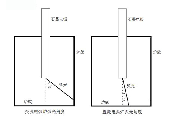 12.爐壁耐火材料使用壽命長。交流電弧爐的弧光與石墨電極的夾角為45°,非常容易打到爐壁上,從而破壞爐墻耐火材料。而直流礦熱爐的弧光與石墨電極之間的夾角是12°,不會打到爐壁上,不會在爐壁上形成熱點,因而不會破壞爐壁耐火材料。